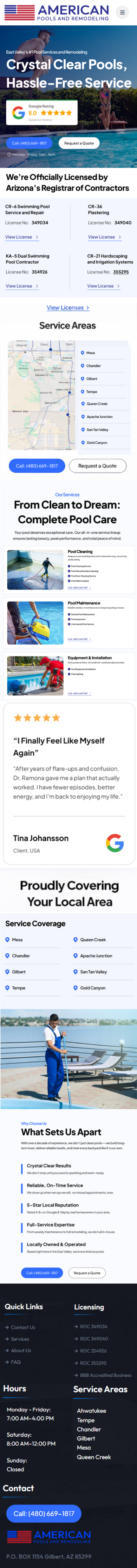 American Pools & Remodeling is a licensed swimming pool contractor serving Arizona’s East Valley, specializing in pool cleaning, maintenance, remodeling, and repairs. Despite a 28-year-old domain and strong licensing credentials, they faced near-zero organic traffic, low Domain Authority, weak local visibility, and an outdated website. Competing against businesses with hundreds of reviews, they needed a complete digital transformation. American Pools chose Monday Digital for our proven expertise in local SEO, technical optimization, and conversion-focused web development.
